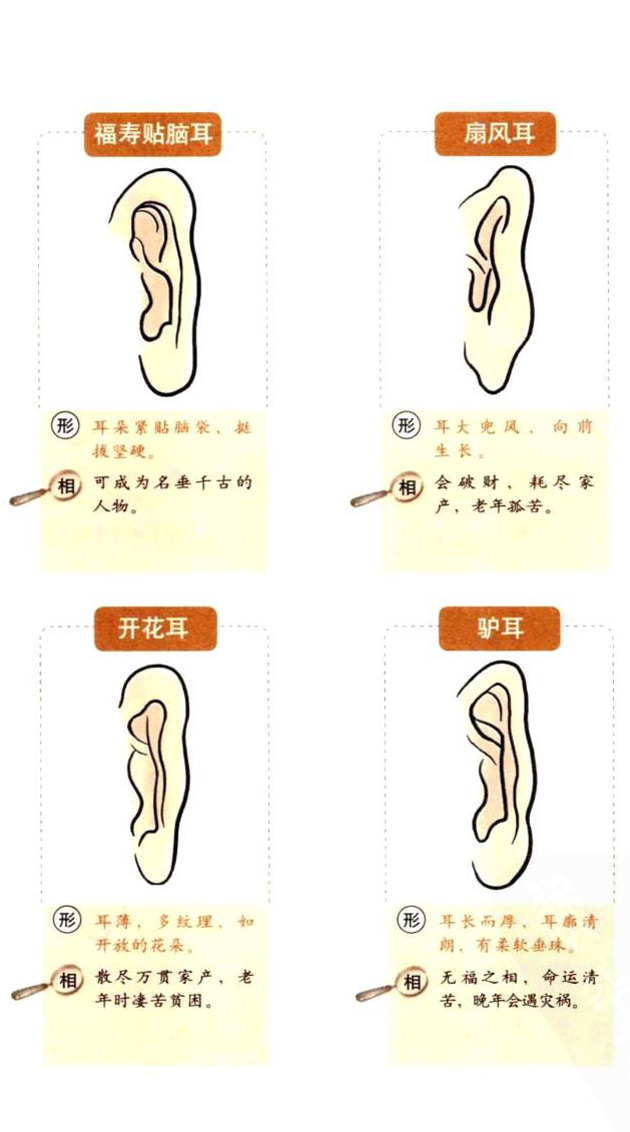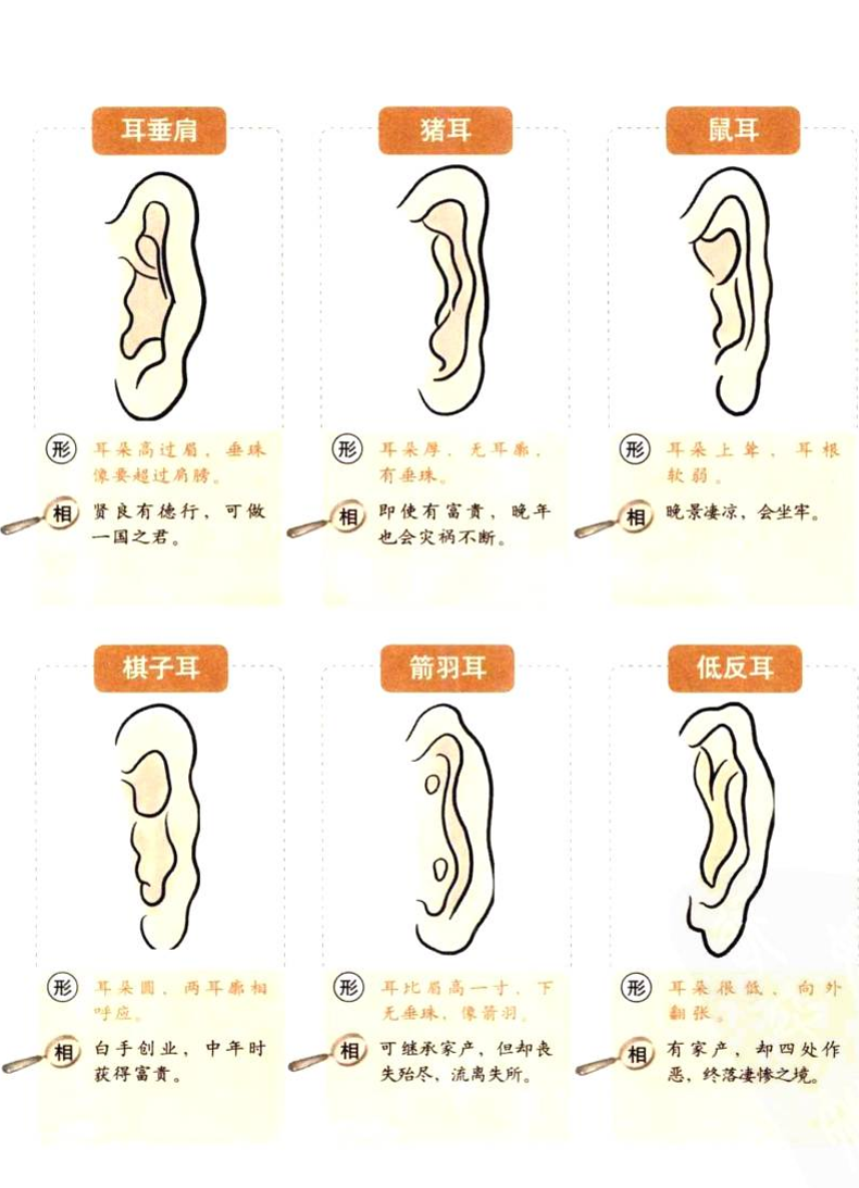 古文有云,耳廓圆润肥厚、色白,且髙于双眉是好相。如果耳珠垂挂则更加富贵,象征着此人将拥有源源不断的福泽。今天我们通过把古代传承分析万千人员的耳朵形状做出的数据分析,结合起来,总结出古人的经验,希望能给大家一点点帮助。