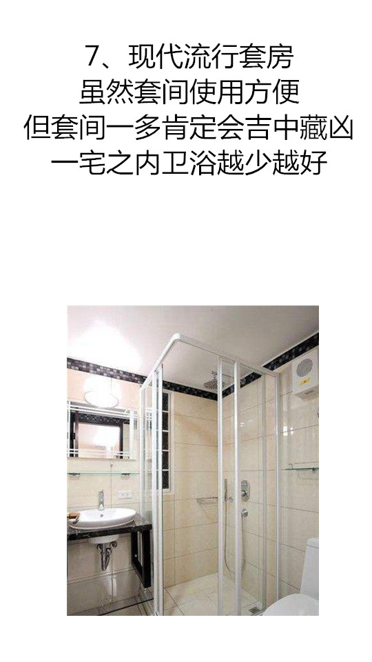 现代的房屋设计,大多是把卫生间和浴室合二为一。卫生间和浴室在风水上都是属于不洁和隐私的地方,布局时要考虑这些因素。