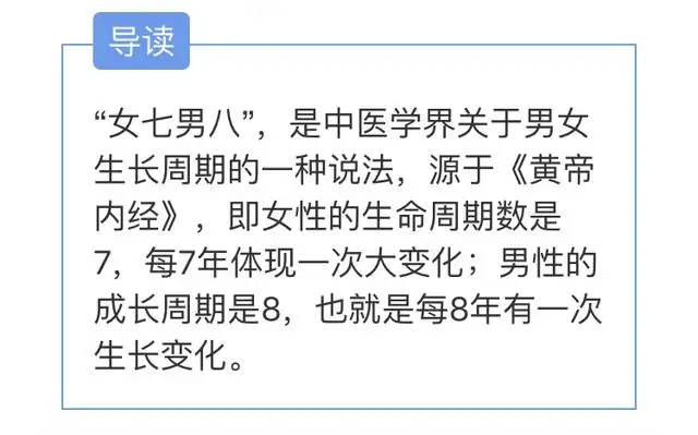 女七男八,顾名思义就是把女性按照7年为一个阶段,男性按照8年为一个阶段,去分阶段的观察和研究男性和女性的生长变化。我们会发现年纪相同的男女,在30岁之前基本看不出什么太大的差异,但是30岁之后就会出现明显的差别。也就是我们经常会说的,女性会比男性显老一些,医学上也有一些数据显示,女性比男性衰老的更快。我们来看一下中医学是如何看待这个问题。