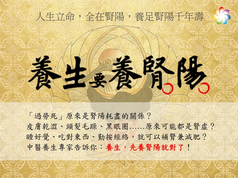 古代中医学的经典名著《黄帝内经》中有这么一段“阳气者,若天与日,失其所,则折寿而不彰”。古人认为人身上的阳气,就像天上的太阳一样,决定了人的寿命。人身体内的五脏也有不同的阳气,其中肾脏的阳气具有决定性作用。但是每个人的肾阳都是有限的,一般情况下,认为肾阳可以让身体使用一百年左右,也就是人的寿命一般在一百岁左右。肾阳是逐渐发育,由弱到强,再由盛到衰的一个过程,看起来可能像一个先升后降的曲线图。反应出了肾阳的变化规律。
