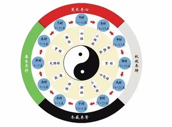 中医最推崇的是“生物钟”养生法,将人比作浓缩了的大自然,随着昼夜交替、四季变化,人的生理活动也进行着周期性的变化。这种周期节律早在《黄帝内经》中就有明确的阐述,《黄帝内经》中我们可以看到年周期的确立是基于四时的。经文所说的“六气谓之时”,正好是我们说的一个季节,以此类推出一年四时(二十四节气)。
