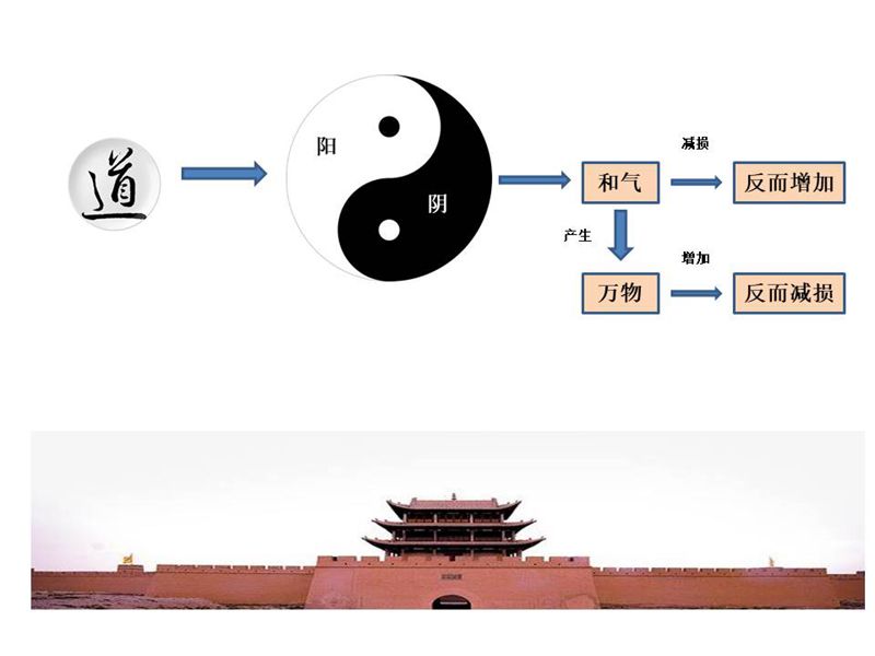 道生一,一生二,二生三,三生万物。万物负阴而抱阳,冲气以为和。人之所恶,惟孤寡不谷,而王公以为称。故物或损之而益,或益之而损。人之所教,我亦教之。强梁者,不得其死,吾将以为教父。