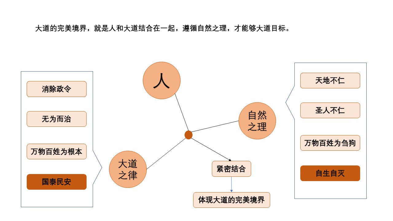 在这里,老子认为“无为而治”的政治主张,不仅适用于治理国家,成为统治者的法宝,而且也适用于个体,将自己和大道紧密相连,甚至融为一体,这样人们才可以获得自由和幸福,也就是大道的完美境界。