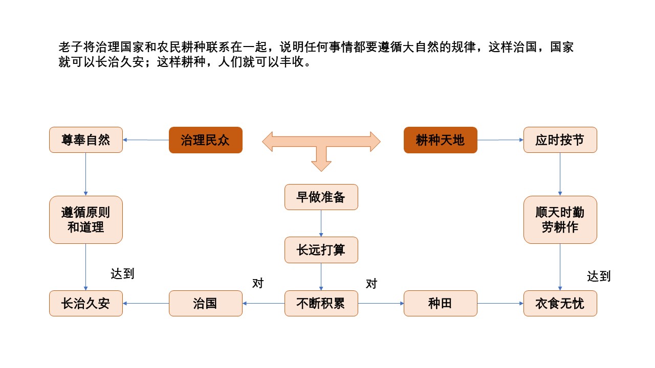 治理民众尊奉自然,没有比种田一样,应时按节,并注重节俭、爱惜物力财力更为重要的了。顺天道、应时节俭、爱惜各种资源,正是早早做好准备;早做准备,有长远的打算,就叫做注重积德。注重积德则无往而不胜,无往而不胜就无法估量它的力量;无法估量它的力量就可以担当好治理国家的重任。掌握住治理国家的原则和道理,就可以长治久安。这就叫做深根固柢,符合长久维持的道理。