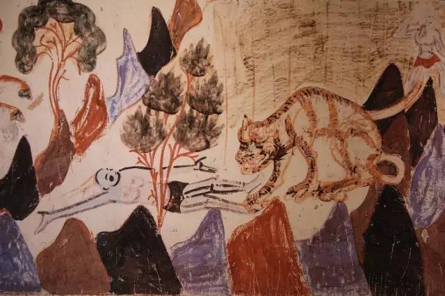 很久很久以前,在南赡部洲有—个大国,叫摩诃罗檀囊,统率着五千多个小国家。国王有三个王子——摩诃富那宁、摩诃提婆和摩诃萨埵。三个王子里,小王子摩诃萨青天生具有一副慈悲心肠。一日,国王、王妃以及三位王子等人出宫游玩。久居宫中的三位王子难得有机会外出游玩,他们如同出笼的小鸟,快乐地玩耍着。正在他们玩得兴起之时,忽然发现了一窝老虎。一只面黄肌瘦的雌虎正在给小虎仔们喂奶。小虎活泼可爱,但是雌虎为了充饥,似乎正要吞食小虎。小王子十分同情老虎,问哥哥怎么才能救活雌虎和小虎,哥哥说除非有人愿意将自己的血肉给老虎吃。于是小王子支走了哥哥,走到雌虎面前,刺伤自己将身体投向虎口。
