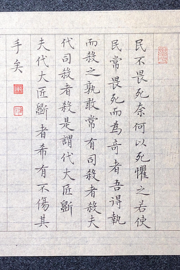 人民不畏惧死亡,为什么还要用死亡来威胁他们呢?假如人民真的畏惧死亡的话,对于为非作歹的人,我们就可以依法将他们杀掉。谁还敢为非作歹呢?经常有专管杀人的人去执行杀人的任务,代替专管杀人的人去杀人,就如同代替高明的木匠去砍木头,那代替高明的木匠砍木头的人,很少有不砍伤自己手指头的。