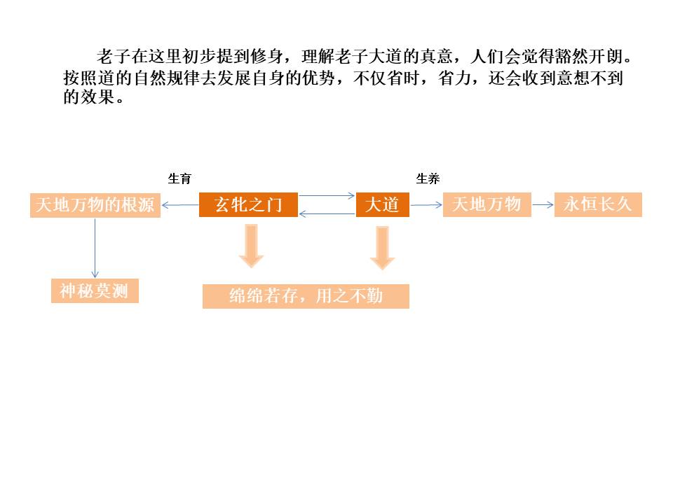老子在这里初步提到修身,理解老子大道的真意,人们会觉得豁然开朗。按照道的自然规律去发展自身的优势,不仅省时,省力,还会收到意想不到的效果。
